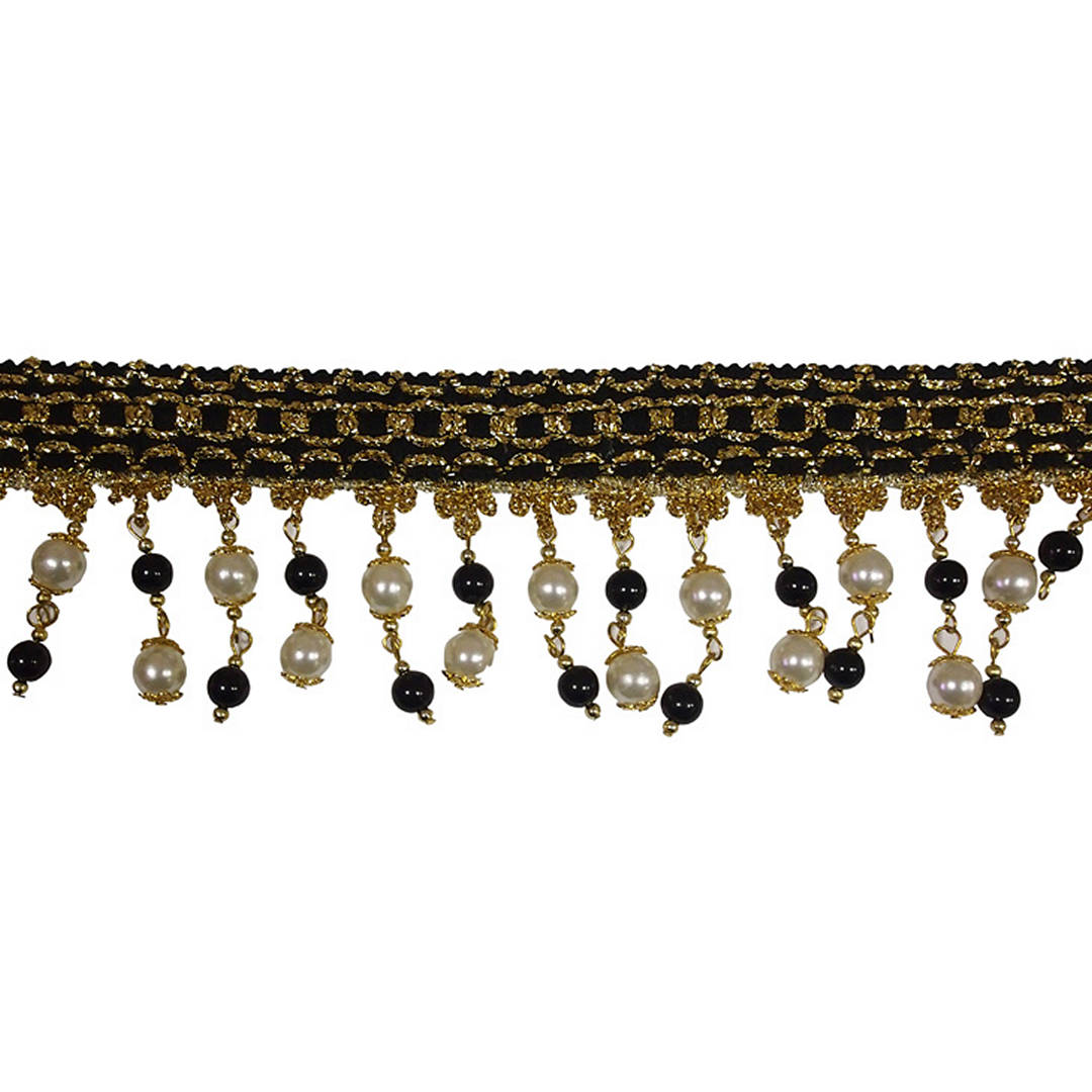 Тесьма с элементами 16/12/09 7см бусины черно/золотистый