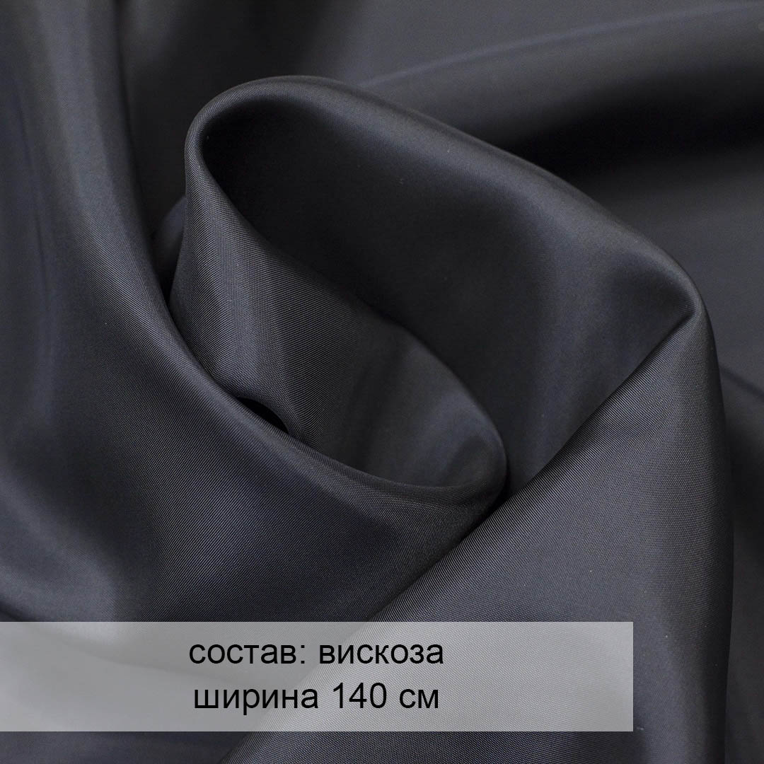 Итальянский подклад, однотонный, черный. Мягкий, нежный, пластичный. Длительное время сохраняет вид и форму. Удерживает цвет, не электролизуется. Используется в качестве подкладки для курток, пальто, шуб, костюмов, галантереи. Ширина 140 см. Состав: 100% вискоза. Страна: Италия.