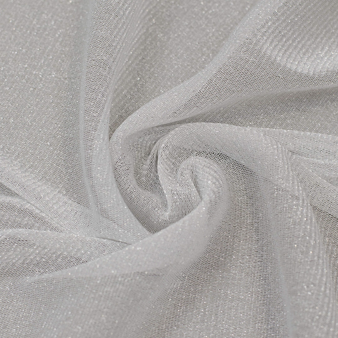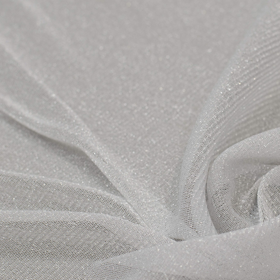 Сетка однотонная серебристая. Прозрачная, пропускает свет. Износостойкая, хорошо держит форму и драпируется, лёгкая. Подходит для пошива нижних юбок для платьев, отделки и декорирования одежды. Ширина 150 см. Состав: полиэстр 90%, люрекс 10%. Страна: Китай.
