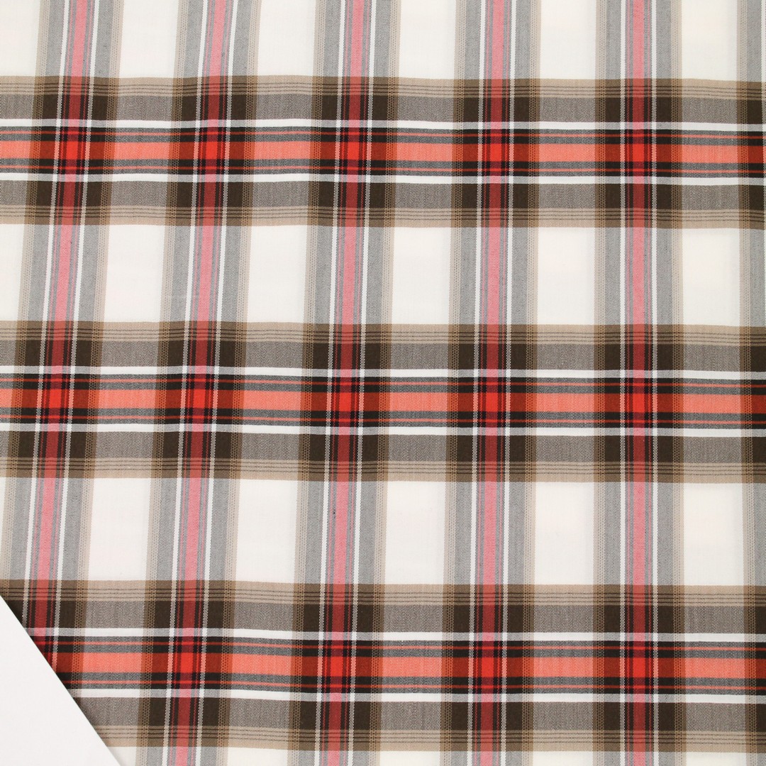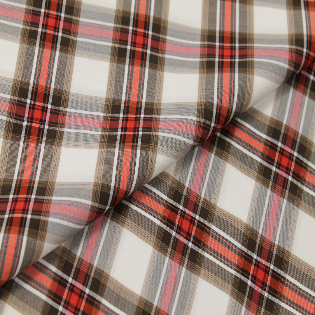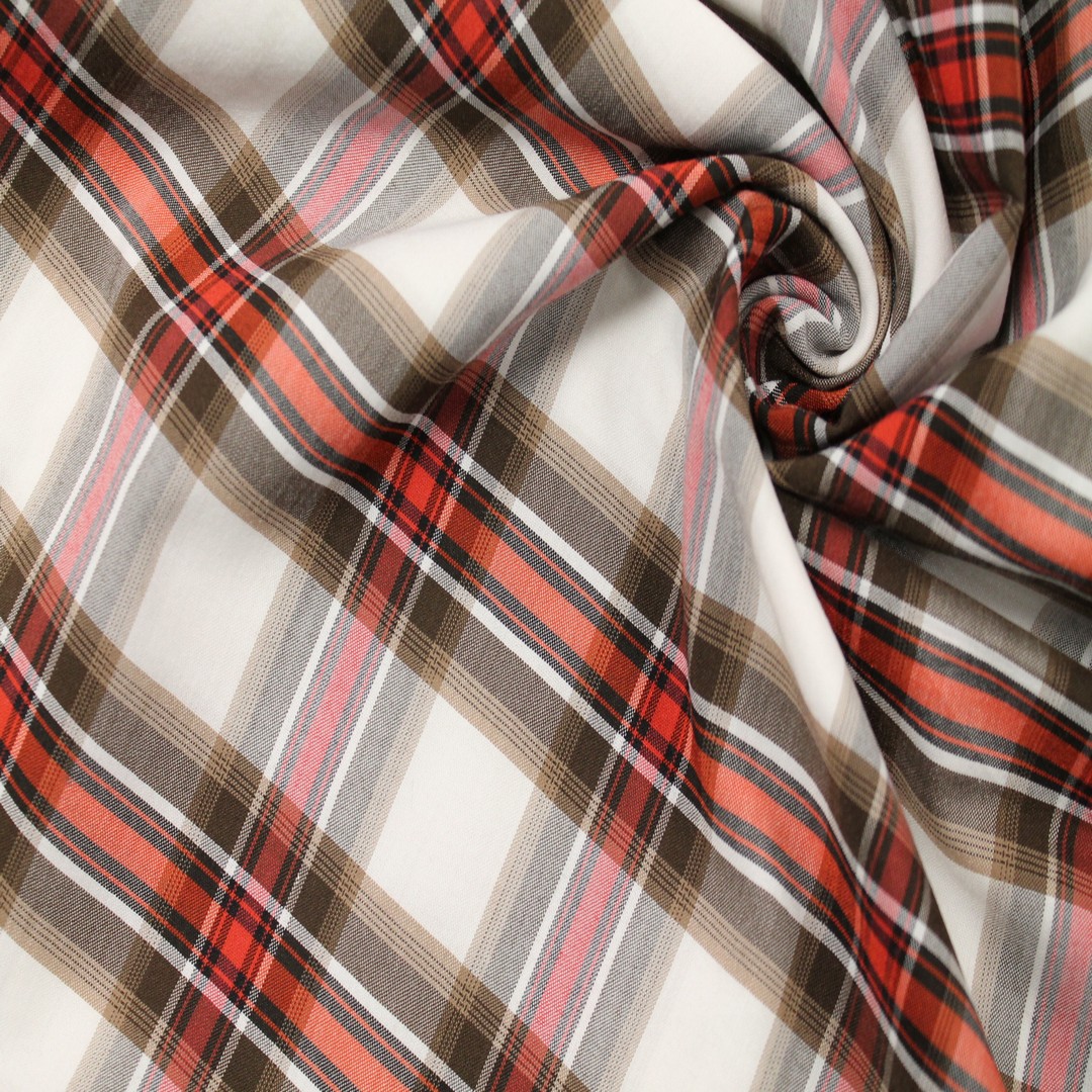 Сорочечная ткань , тактильно приятная ,в клеточку коричнево- красных цветах , состав вискоза 48% пэ 50% эл 2%